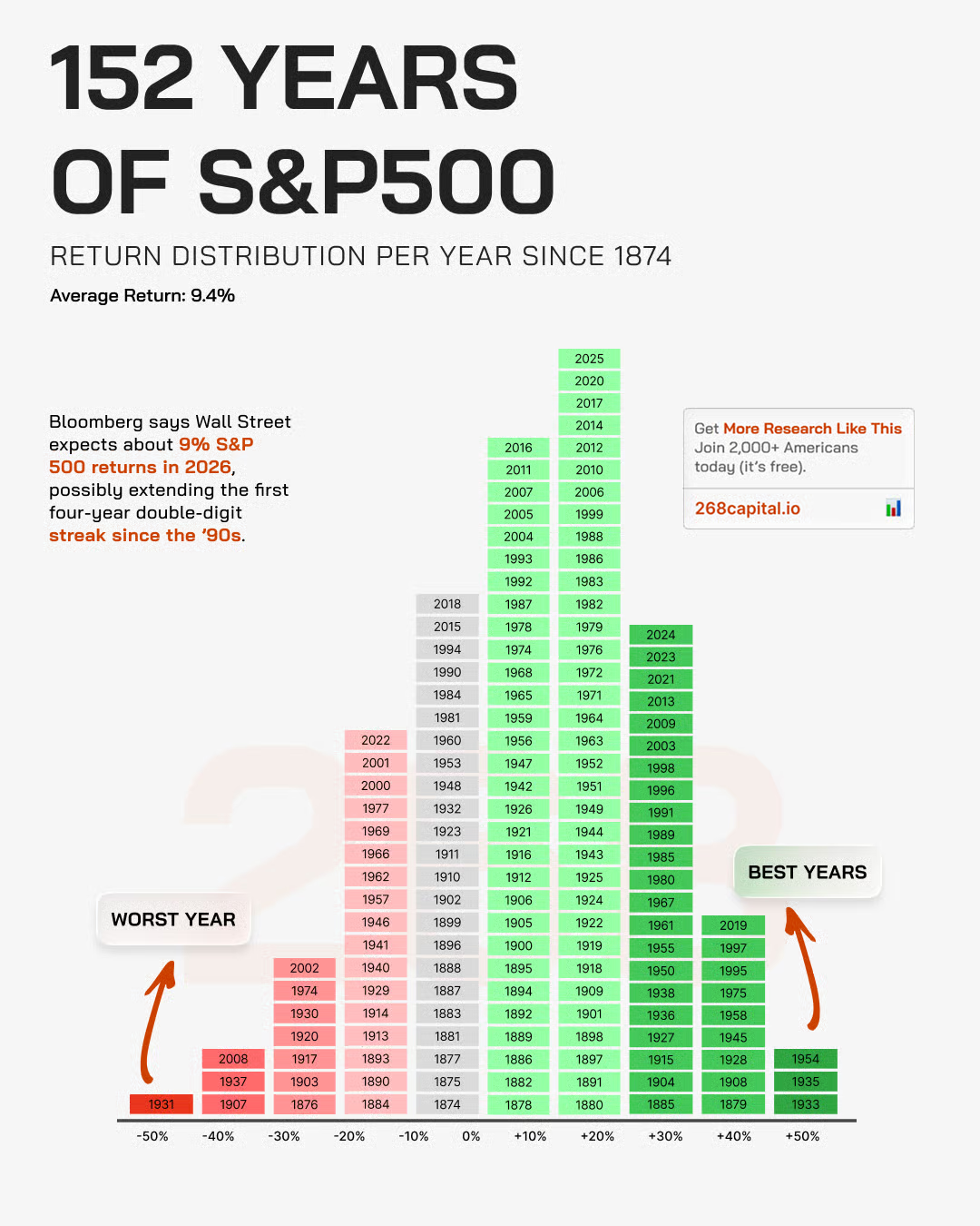 If stocks go up again in 2026, that would make four years in a row of gains — something that almost never happens in market history.
